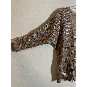 Chicos Metallic Open Knit Sweater Women's Size Small (Chicos 0) Gold Winter I10