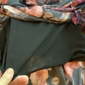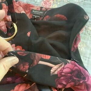 Marciano Black Floral Belted Lined Wrap Skirt Size 0 Asymmetrical Side Zip. Preowned, please see all pictures for condition and approximate measurements