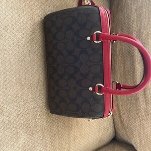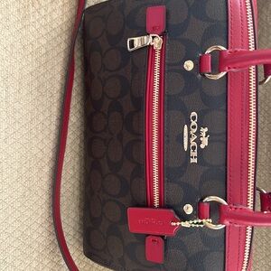 Coach Rowan Brown and Red Satchel New