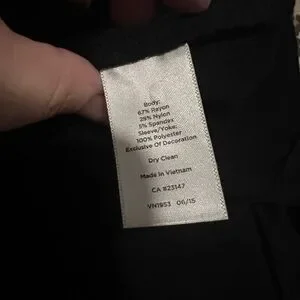 See stain at the bottom of the dress. It's never been washed, so it may come out with a good wash! I flipped the dress inside out when I was lint rolling it and found more stains inside the dress, but those aren't visible on the outside (the last photos)