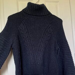 Abercrombie & Fitch | Navy Cable Knit Balloon Sleeve Turtleneck Sweater - Size M