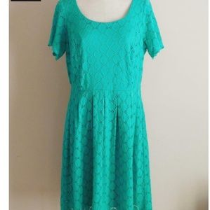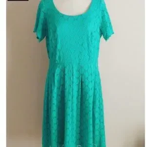 Reposhing this item I purchased from @amyjarnett. This green-blue dress has plenty often of stretch and can be worn casu or more dressy dep on how you accessorize! It has a pinup feel to it with a fit and flare design. I would wear this dresss to work or to the mall. Pleasee message e with any questions you have.