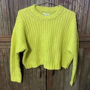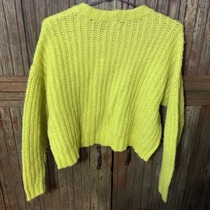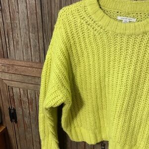 Womens Juniors American Eagle Outfitters AEO Chunky Knit Ribbed Neon Green Crewneck Acrylic Sweater Size S Small