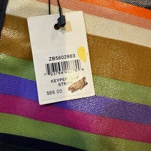 Fossil Keyper Stripe Coated Canvas w Leather Trim Crossbody Messenger Bag-flap slide closure-top handle-adjustable strap withh 24 inch drop-3 interior pockets 1 zips-approximately 12.5x10x4-new with tag no flaws!