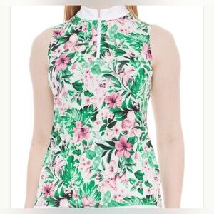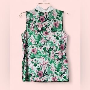 NWT TOMMY BAHAMA Pink Green Sands Floral Sleeveless Mock Golf
