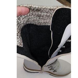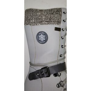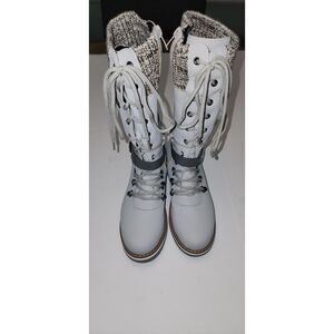 JcBaby Women's Grey Lace-up Calf-High Snow Boots 7.5. No tags or size indicated but fits a women's size 7.5 (I purchased these for myself in a 7.5.) These snow boots are made from a synthetic super lightweight neoprene/rubber like material, have laces up the front, zipper on inside seam and knit upper . Never wore these boots outside, any marks are from storage. In like new condition.
