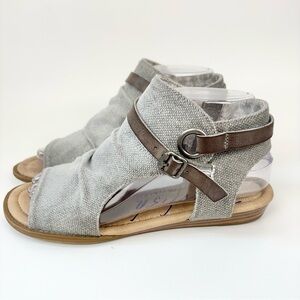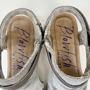 Blowfish Malibu Blomoon Sandal (Size 8). Grey, faux leather adjustable straps. Low, wedge heel. Good used condition.
