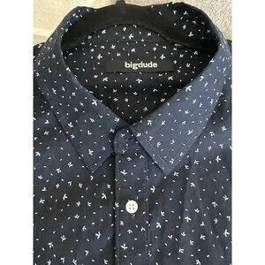 Big Dude Button Shirt Dress Men Size 4XLT Blue Workwear Formal Business Office
