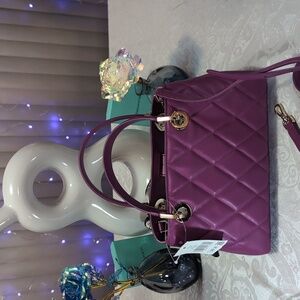 This NWT KATE SPADE purple quilted satchel features a vibrant purple color and is crafted from quilted leather, showcasing a structured boxy shape. The bag is adorned with gold-toned metal accents, adding a touch of elegance to its design. Approximate dims are 9" wide x6" tall x 3.5" deep. If you are a purple 💜 like me, this is great choice with very soft leather and is quite roomy for a small purse. Sharing the love with my posh friends and followers 💜