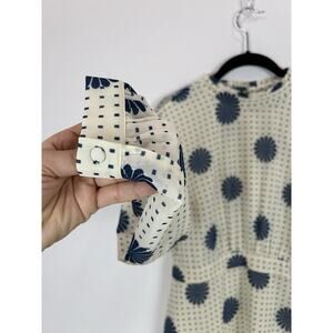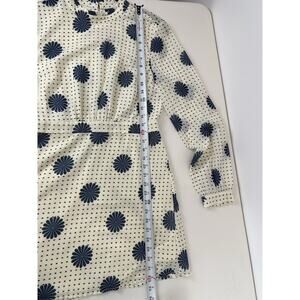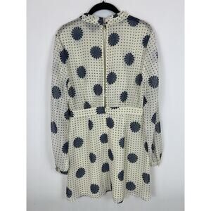 Modcloth Retro Disco Dress Mini Short Open Back Long Sleeve Size 8 Ivory Blue