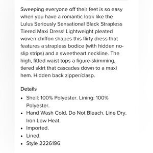 LULUS SERIOUSLY SENSATIONAL BLACK STRAPLESS MAXI DRESS NWT