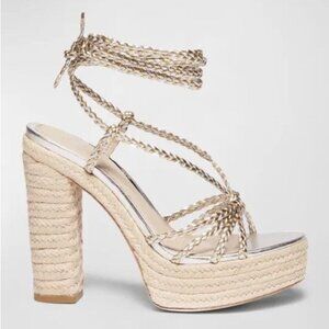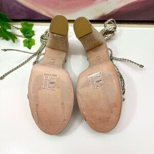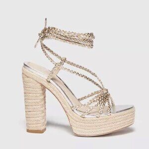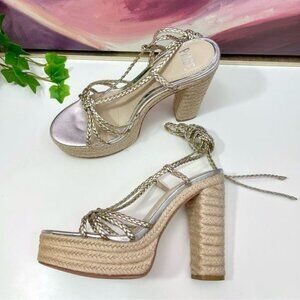 Paige Carson Braided Metallic Ankle WrapPlatform Block Heel Sandal Platinum 8.5