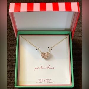 This gold-dipped necklace features a puffy heart pendant adorned with pink stones, making it great for adding to your own collection! ⭐️ ⭐️ ⭐️