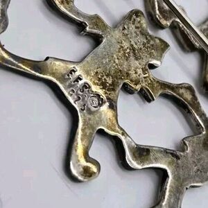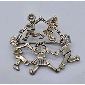 This vintage EFS sterling silver brooch pin features a circle of children holding hands. The intricate design is crafted with 925 metal purity, making it a durable and valuable addition to any jewelry collection. It is a great gift for anyone who loves vintage jewelry.