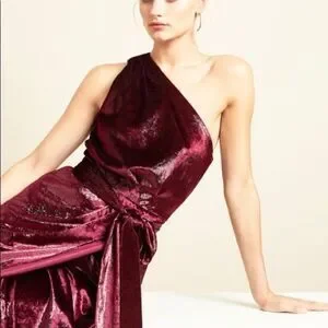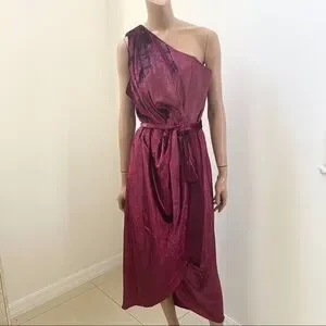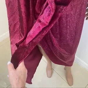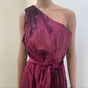 Ted Baker Abinaa burgundy metallic velvet one shoulder draped midi dress XXL size 6 in Ted Baker