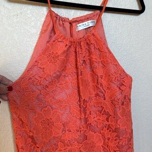 Trina Turk Coral Lace Halter Maxi Dress Summer Wedding Guest Cocktail Party
