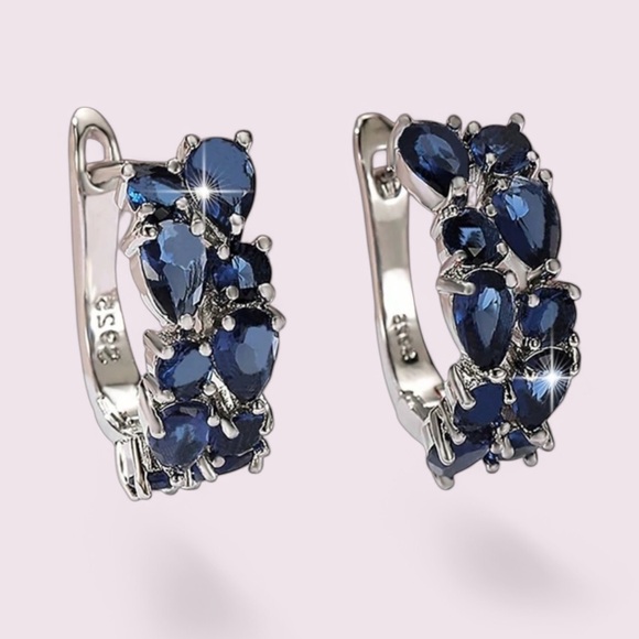Gorgeous Royal Blue Diamond CZ Hoop Earrings in Sterling Silver