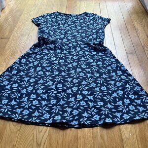 Draper James Size L Navy Blue Floral Print Ponte Knit Short Sleeve A-Line Dress
