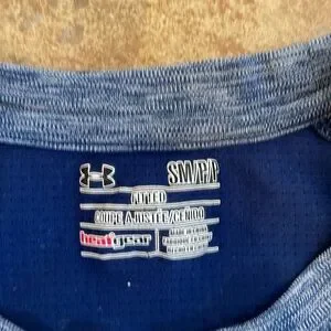 4 size men’s small Under Armour heat gear short sleeves short sleeve light weight shirts, 2 have a very small amount of pilling on the back (SEE PICS) one has a small crack in logo on front (SEE PICS), 1 shirt is Adodas long sleeve size smalll, all in pretty good condition condition!! Long sleeve has small snag on front (see pic!)