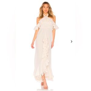Lovers + Friends Women's White Boho Halter Ruffled Maxi Dress Size Small NWT