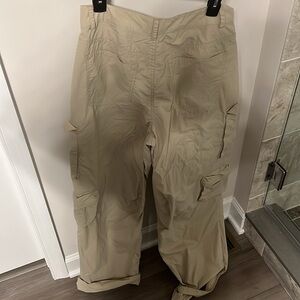 Womens wide leg cargo pants size large. Waist flat 15” length 32”” rise 10” worn twice euc no flawss