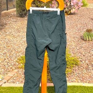 LIKE NEW, ZIPPERED FRONT, TWO FRONT POCKETS, ONE BACK POCKET, ONE RIGHT SIDE POCKET, INSEAM 29 1/2”, DARK GREY, SIZE SMALL
