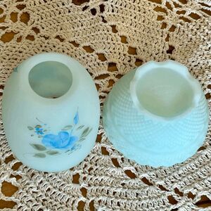 Vintage Fenton Fairy Lamp Hand Painted Blue Rose Satin Artist Signed