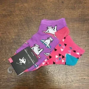 1 pair of ankle socks in w/ cats performing yoga