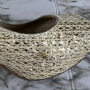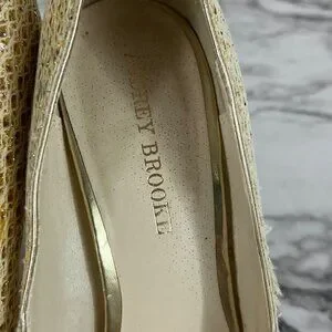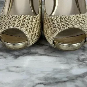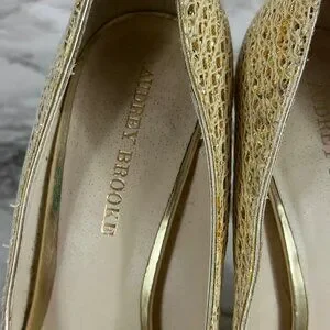AUDREY Brook Peep Toe Heels Quillan Gold Cross Stitch size 9.5