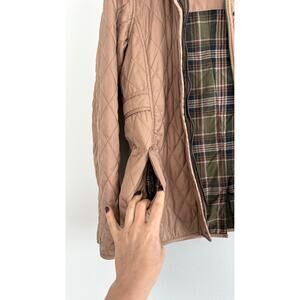 L.L. Bean Khaki Light Brown Quilted Green Corduroy Trim Riding Chore Jacket
