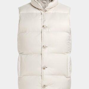 Great Vest worn 3 times for photo shoot. Size XL, runs more like a Large. Wonderful material, great deep inside pockets, sand color pairs easily.