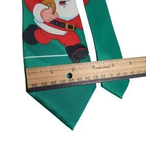 This vintage Holiday Traditions necktie by Hallmark brings nostalgic charm with its playful Santa and reindeer football scene. The vibrant green and red colors evoke classic holiday cheer, making it an eye-catching accessory for festive occasions. Crafted from polyester, this tie is both durable and easy to maintain, ideal for adding a touch of whimsy to your holiday wardrobe.