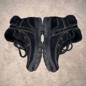 LIKE NEW! BareTraps Deelya Water Resistant Suede Ankle Boots w/Faux Fur, Sz 8.5. These cozy boots will keep your feet toasty warm while protecting them from the winter weather. * Water-resistant suede uppers * Fully insulated with a faux fur lining * Black faux fur with brushed silvertone hardware * Inside zipper and laceup detail * Textured outsole; padded insole * Leather upper; faux fur, man made balance Minimal wear, very good preowned condition, no major flaws.