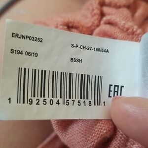 Coral joggers with drawstring ruffled waist, front slash pockets and elastic ankles. Two very small snags as shown in picture but in great shape and not noticeable when wearing. Smoke free home.