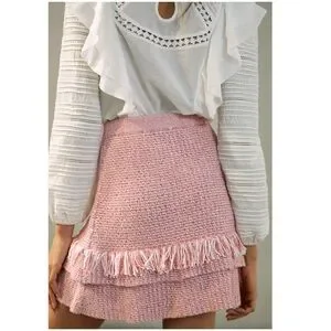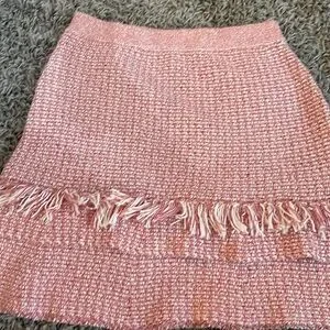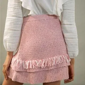 New Anthropologie Maeve Tamara Fringed Mini Sweater Skirt Pink Size Small NWT