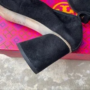 Tory Burch Heels Column Block Therese 65mm Black Suede Round Toe Womens 9