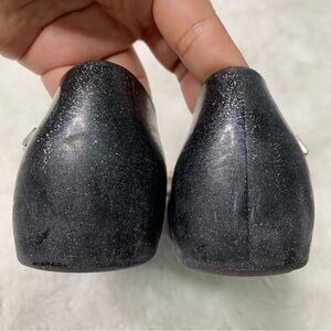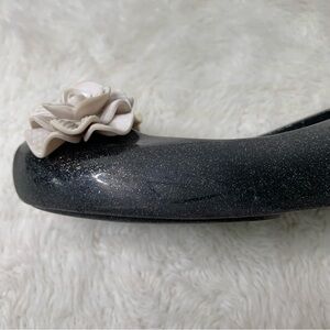 Pre-owned authentic Mini Melissa Girl's Black Ultragirl Garden Floral Slip On Flat Shoes Size 8-9. No size tag, but according to measures is: 8-9. Sole is 7" inches. Has some scuffing. Has some marks. Please Look At Pictures For Better Reference. Let Me Know If You Have Any Other Questions. Happy Shopping! NDEC24 EB. Z15