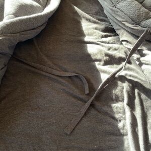 This is in really good preowned condition. Very thick and heavy coat weighs about 4 pounds. Cannot bundle this item. This coat is not to be confined to wearing it just the house, as shown in the stock images, it’s meant to be worn inside or outside. Has two side pockets and one front pocket. Inside tie and outside belt. please message with any questions. No material tag found. Thank you!