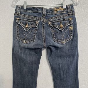 Miss Me Jeans JP4896D-3 Boot Gold Rivets Blue Denim Women’s Size 29x33 Low Rise