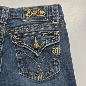 Miss Me Jeans JP4896D-3 Boot Gold Rivets Blue Denim Womens Size 29x33 Low Rise