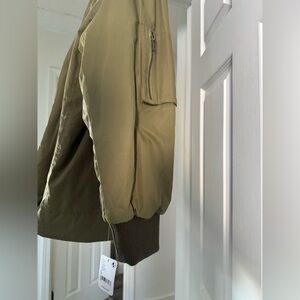 The perfect blend of cool and classic, this timeless bomber jacket is featured in a relaxed, slightly oversized fit with dropped shoulders, slightly exaggerated sleeves, and contrast lining for an added special touch.