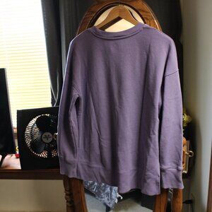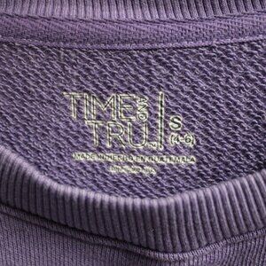 This shirt is a thicker material, high-low shirt. It is like new - no rips, stains or tears. Ladies size small (4-6) by the brand Time and Tru. Lilac purple color.