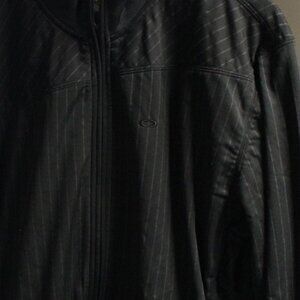 This is a zip up jacket / shacket from Oakley and is in a men's size extra large. It is like new - no rips, stains, or tears. Subtle stiped pattern. Feels like a very nice material.