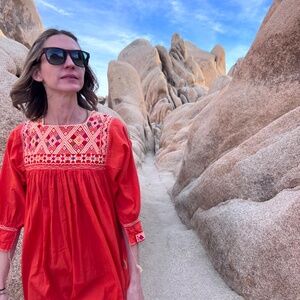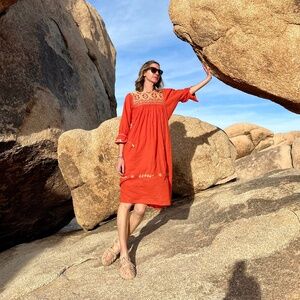 I have worn this dress once on a trip to Joshua Tree. It's beautiful, I just do not like how I look in red tones so selling since I never wear it. Listings on Etsy for this type of dress are over $120-$150. I paid $120 when purchased.