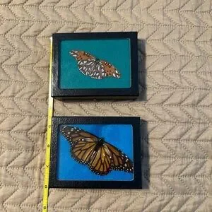 Enhance your home decor with this elegant butterfly shadow box set. Featuring vibrant butterflies against a striking blue and green backgrounds, these pieces add a touch of nature to any room.