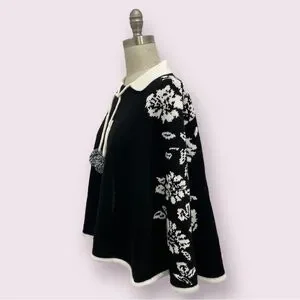 Women’s Knit Floral Pullover Wrap Audrey & Grace Black And White Size OS