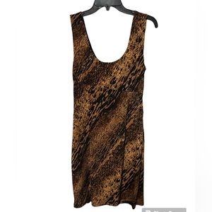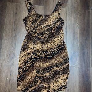 Black Brown Animal Print Dress Halloween Dress Slimming gather Side at side