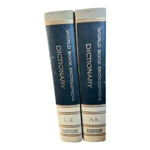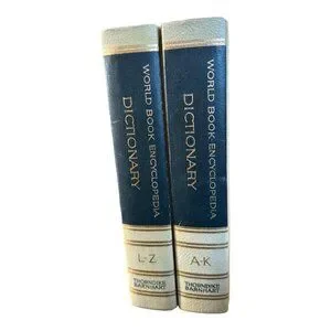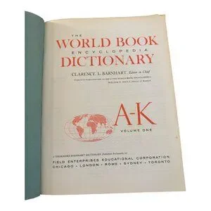 This vintage 1963 World Book Encyclopedia Dictionary set by Thorndike Barnhart encompasses A-K and L-Z volumes. With classic hardcover design and gold lettering, it serves as a nostalgic piece for language enthusiasts or collectors. Pages are aged, adding to its antique charm and evoking a bygone era of comprehensive knowledge.