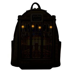 Catching the Hogwarts Express to embark on a magical journey? Arrive in brilliant style with our Hogwarts School of Witchcraft and Wizardry Harry Potter mini backpack. A close-up “window” view of the Great Hall offers a cozy peek inside. Candles appear to illuminate the printed brick façade, and the flames light up in the dark! On the back, you’ll find the Hogwarts crest and Hedwig perched above. Pack your daily essentials—and perhaps a few potions—to take off on imaginative adventures.