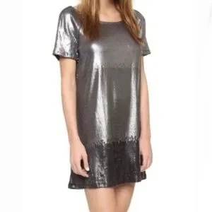 Free People 🖤 Gunmetal Sequined Ombre Backless Oversized Shift Mini Dress, S/XS
